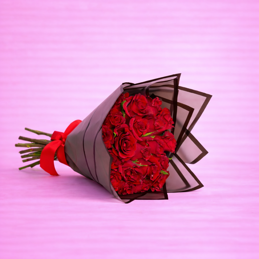 Each rose symbolizes deep respect and heartfelt devotion, wrapped in a modern, refined cover that enhances the richness of the crimson blooms. Bold yet sophisticated, this bouquet is designed to leave a lasting impression.